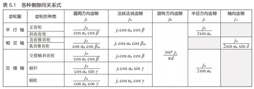 下列表中,列出了各種齒輪的側(cè)隙關(guān)系式。圓錐形齒輪(錐齒輪)的場(chǎng)合,作為徑向側(cè)隙的替代,需要討論軸向側(cè)隙。