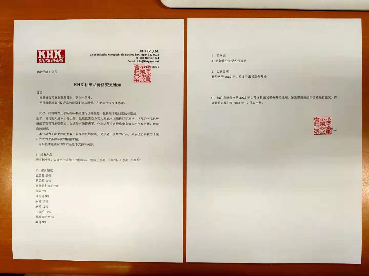 KHK產(chǎn)品價(jià)格變更通知